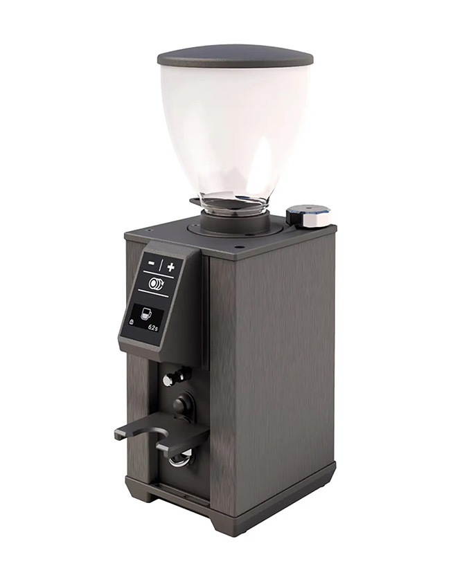 El molino Leo 55 está equipado con tolva de 300 g y ajuste micrométrico con perilla de aluminio para un control preciso de la molienda. Las muelas planas patentadas de 55 mm con tolerancias reducidas garantizan un paralelismo óptimo. El sistema sin tornillos permite la extracción rápida de las muelas para mantenimiento y limpieza. La tecnología Silent System reduce el ruido durante el uso, mientras que la horquilla ajustable en altura con revestimiento antivibración estabiliza el portafiltro. La interfaz permite seleccionar 3 dosis programables más función continua, con contador de dosis integrado. El botón de inicio está certificado IP68. La productividad instantánea para espresso es de 1,8–2,2 g/s, con motor de 390 W.