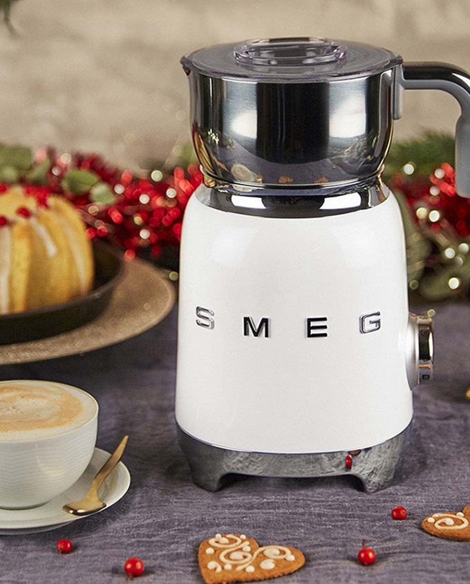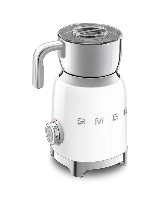 El espumador de leche MFF11 de Smeg es el deseo hecho realidad para quienes aman empezar el día con suavidad. Poder disfrutar de un latte macchiato cremoso, un mocaccino o un chocolate caliente cómodamente en casa gracias a este valioso electrodoméstico de diseño, fácil de usar.